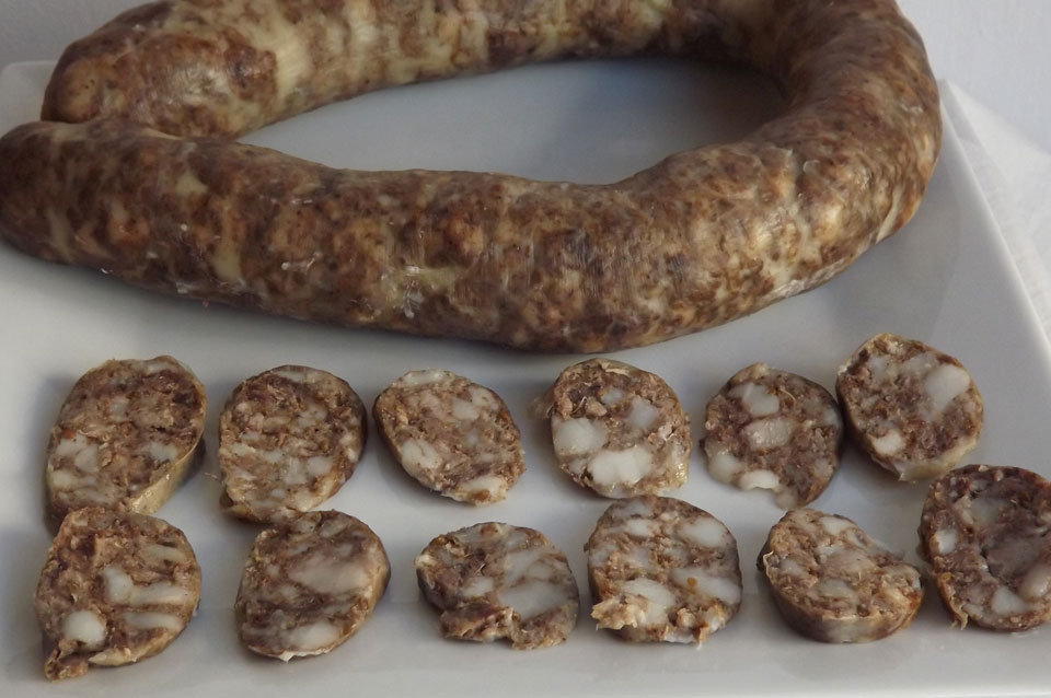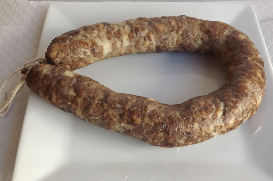 INGREDIENTES: Magra de cerdo, tocino de cerdo, pimienta, canela, matalahúva, orégano, clavo y sal.